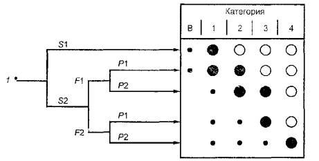 Рисунок Б.1 - Выбор категорий для элементов систем управления, связанных с обеспечением безопасности Б.2 Руководство по выбору параметров S, F и Р для оценки риска Б.2.1 Тяжесть травмирования видов S1 и S2 При оценке риска, связанного с неисправностями в элементах системы управления, имеющих отношение к безопасности, рассматривают только легкие (обычно обратимые) и серьезные травмы (как правило, необратимые, включая летальный исход). Чтобы сделать выбор, необходимо принимать во внимание обычные обстоятельства несчастных случаев и нормальные процессы лечения, например ушибы и(или) рваные раны следует классифицировать как S1, в то время как ампутацию или летальный исход - как S2. Б.2.2 Частота и(или) продолжительность подверженности опасности видов F1 и F2 Как правило, действительный период времени, в течение которого должны выбираться параметры F1 и F2, не может быть задан. Однако следующее объяснение может помочь в правильном решении при сомнительных случаях. Параметр F2 следует выбирать в том случае, если человек (лицо, оператор) кратковременно или длительно подвергается опасности. Не имеет значения, подвергается ли последовательно опасностям один и тот же или разные люди (операторы), например при пользовании лифтами. Продолжительность подверженности опасности следует оценивать на основе среднего значения, которое можно представить как отношение к общему периоду времени, в течение которого используют данное оборудование. Например, если в течение рабочего цикла необходимо регулярно просовывать руку между механизмами машины для того, чтобы загружать и снимать детали, то тогда следует выбирать параметр F2. Если доступ к детали требуется время от времени, то тогда можно выбирать параметр F1. Б.2.3 Возможность избежать опасности вида Р При возникновении опасности важно знать, можно ли ее распознать или ее можно избежать прежде, чем она приведет к несчастному случаю. Например, важно рассмотреть, можно ли идентифицировать определенную опасность по ее физическим характеристикам или ее можно распознать только техническими средствами, например по индикаторам. Другими важными аспектами, влияющими на выбор параметра Р, являются, например: - работа под наблюдением или без него; - выполнение работы опытным специалистом или непрофессионалом (дилетантом); - скорость возрастания опасности, например, быстро или медленно; - возможность избежать опасности, например, путем эвакуации по лестничному маршу или с помощью третьей стороны; - практический опыт по безопасности, связанный с определенным процессом. При возникновении опасной ситуации параметр Р1 следует выбирать только тогда, когда есть реальный шанс уклониться от несчастного случая или значительно уменьшить его эффект. Параметр Р2 выбирают, когда почти нет возможности избежать опасности. ПРИЛОЖЕНИЕ В(справочное) Примеры значительных отказов и неисправностей для различных технологийВ.1 Электрические (электронные) компоненты Некоторые отказы и неисправности, которые следует принимать во внимание: - короткое замыкание или разомкнутая цепь, например неисправности заземления (короткое замыкание на защитном проводе или проводящей части), обрыв цепи в любом проводнике; - короткое замыкание или разомкнутая цепь в отдельных компонентах, например в позиционных переключателях, управляющих и регули