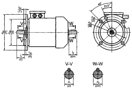 Примечание - Размеры шпонок и шпоночных пазов - по МЭК 60072-1 [8]. |