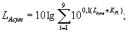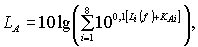 При этом вначале определяется суммарный уровень по формуле (3.2), а затем выполняется коррекция А по формуле (3.4). Суммарный эквивалентный уровень звука от источников непостоянного шума рассчитывают по формуле