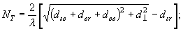 При расстояниях dsr между источником и расчетной точкой меньше 100 м (dsr < 100) коэффициент K можно положить с точностью до 1 дБ равным единице. При боковой дифракции объектов (см. рисунок 3.6) коэффициент К равен также единице. При расчете величины Dz предполагается, что существует только один путь прохождения звука от источника до приемника. В противном случае необходимо провести ряд дополнительных вычислений для других путей, как показано на рисунке 3.6. В результате необходимо энергетически суммировать вклады от всех путей распространения звука. 3.3.8.4. Для толстых экранов, а также объектов конечной толщины (насыпи, дома) дифракция звука может происходить дважды - как на передней, так и на задней кромке экрана (рисунок 3.8). В отличие от (3.46) потери установки экрана определяются в этом случае следующим образом [3]: Dz = 10 lg (3 + 10 NтC2C3К), (3.48) где Nт - число Френеля, которое в отличие от выражения (3.45), справедливого для тонких экранов, определяется теперь как