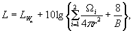Ωi - фактор направленности i-го источника звука; N - общее число источников звука; ri - расстояние исследуемой точки поля до i-го источника звука. При этом постоянная зала В определяется следующим образом: где S - общая площадь ограждений станции, включая все элементы интерьера. В свою очередь параметр