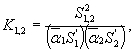 S1,2 - общая площадь проемов между связанными объемами станции; К1,2 - коэффициент акустической связи между соседними объемами станции; δ1 и δ2 - постоянные затухания звука в соседних объемах станции;