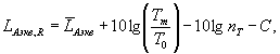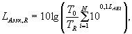 где LAEi - уровень звуковой экспозиции шума от прохождения i-го поезда, дБА; N - число событий прохождения поезда за время TR оценки шумового воздействия; T0 = 1 с. Ж.2 Представляя шумовое воздействие