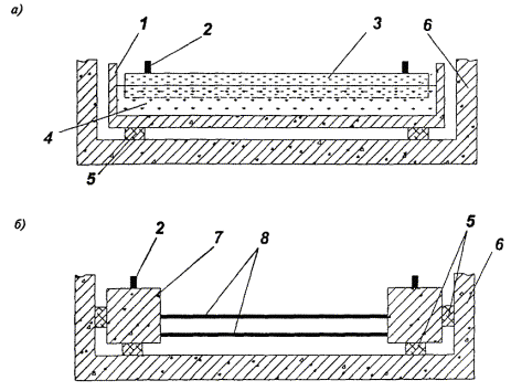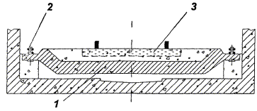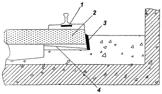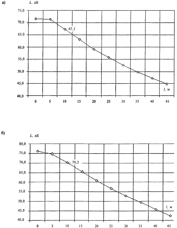 Перегонный тоннель с железобетонной обделкой Рисунок Г.2 - Конструкции лотка и верхнего строения пути ПРИЛОЖЕНИЕ Д(рекомендуемое) АППАРАТУРА, РЕКОМЕНДУЕМАЯ ДЛЯ ВЫПОЛНЕНИЯ ИЗМЕРЕНИЙ И ВЫПОЛНЕНИЯ ЧАСТОТНОГО АНАЛИЗАВ измерительном тракте в качестве вибродатчиков рекомендуется использовать акселерометры типа АР-98 фирмы «Глобал-Тест» (Россия), типа D3143M1 фирмы «Ditran Instruments», типа 4332 фирмы «Bruel & Kjaer» (Дания) или типа 353В33 фирмы «Larson-Davis» (США). Для выполнения частотного анализа рекомендуется применение цифровых анализаторов фирм «Svantek» (Польша) - типы SVAN 912AE, SVAN 946, SVAN 947, «Октава+» (Россия) - тип Октава 101В, «Bruel & Kjaer» (Дания) - тип 2260, «Hewlett Packard» (США) - тип HP 3569A, «Larson-Davis» (США) - тип D2800 (2900). ПРИЛОЖЕНИЕ Е(рекомендуемое) ПРИМЕР ОПРЕДЕЛЕНИЯ ФИЗИКО-МЕХАНИЧЕСКИХ ПАРАМЕТРОВ ГРУНТАДля определения коэффициента поглощения вибрации в грунте были проведены измерения виброскорости, возбуждаемой при проведении десяти слабых стандартизованных взрывов. Измерения величин вибраций проводились в соответствии с требованиями ГОСТ 12.1.012. Использовалась аппаратура «Bruel & Kjaer» (Дания) и «Larson-Davis» (США). В измерительном тракте в качестве вибродатчиков использовались акселерометры типа 4332 фирмы «Bruel & Kjaer» и типа 353В33 фирмы «Larson-Davis». Данные акселерометры являются прецизионными пьезокерамическими преобразователями с широким частотным (до 30000 Гц) и динамическим (более 120 дБ) диапазонами. Акселерометры серии 353В33 используют встроенную электронику для согласования сигнала. Согласование служит для преобразования высокоимпедансного зарядового сигнала с пьезокристалла в низкоимпедансный сигнал напряжения с импедансом менее 100 Ом. Такой низкоимпедансный сигнал может передаваться по обычным кабелям на большие расстояния практически без ослабления. Сигнал от вибродатчиков регистрировался на четырехканальном магнитофоне типа 7005 фирмы «Bruel & Kjaer». Частотная характеристика магнитофона позволяет производить запись и воспроизведение сигналов без частотных искажений от 0,1 до 10000 Гц. В качестве согласующих устройств использовались усилители анализатора типа 2900 фирмы «Larson-Davis» и усилители регистрирующего магнитофона. Перед проведением измерений и после каждой серии измерений все измерительные тракты калибровались при помощи калибратора типа 4294 фирмы «Bruel & Kjaer». При измерениях на поверхности грунта для крепления датчиков использовались металлические плиты диаметром 500 мм и толщиной 10 мм. Вибрация в грунте возбуждалась взрывным воздействием на стенки и дно шахты глубиной Н = 21,75 м и диаметром 8 м. Шахта представляла собой цилиндр, стены которого смонтированы из чугунных тюбингов. В зоне измерений структура грунта следующая: верхний слой глины толщиной 6 м, далее песок. На поверхности грунта измерялись вертикальные и горизонтальные среднегеометричные значения виброскорости на расстояниях от стены шахты l = 0, 10, 20, 30, 40 м. Сигналы записывались на четыре канала магнитофона и анализировались в лабораторных условиях спектроанализатором типа 2900 фирмы «Larson-Davis». Результаты приведены в таблицах Е.1 и Е.2. Таблица Е.1 - Вертикальная компонента виброскорости