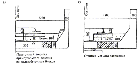 д) сдвоенный перегонный тоннель из сборных ж/б блоков Рис. Г.1 - Конструкции тоннельных обделок