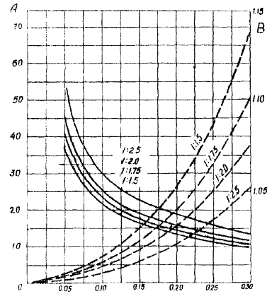 Проверяем стандартные заложения откосов (A и B - по графику рис. 4). n = 1,5; A = 12,5; B = 1,057.