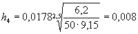 14. По формуле (1) устанавливают скорость воды на площадке n = 4 V4 = 0,00234 (50 · 9,15)0,4 · 6,20,6 = 0,081 м/сек. 15. По формуле (8) вычисляют допускаемую (неразмывающую) скорость на площадке n =4