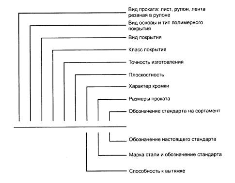 Дата введения 2004-07-01 1. Область примененияНастоящий стандарт распространяется на тонколистовой холоднокатаный и холоднокатаный горячеоцинкованный прокат с полимерным (лакокрасочным и пластизолевым) покрытием, нанесенным валковым методом в агрегатах непрерывного действия, предназначенный для применения в строительстве, приборостроении, при производстве внешних панелей бытовой техники и других отраслях промышленности, кроме автомобилестроения. 2. Нормативные ссылкиВ настоящем стандарте использованы ссылки на следующие стандарты: ГОСТ 12.3.002-75 Система стандартов безопасности труда. Процессы производственные. Общие требования безопасности ГОСТ 12.3.005-75 Система стандартов безопасности труда. Работы окрасочные. Общие требования безопасности ГОСТ 12.3.008-75 Система стандартов безопасности труда. Производство покрытий металлических и неметаллических неорганических. Общие требования безопасности ГОСТ 380-94 Сталь углеродистая обыкновенного качества. Марки ГОСТ 1050-88 Прокат сортовой калиброванный, со специальной отделкой поверхности из углеродистой качественной конструкционной стали. Общие технические условия ГОСТ 6456-82 Шкурка шлифовальная бумажная. Технические условия ГОСТ 7566-94 Металлопродукция. Приемка, маркировка, упаковка, транспортирование и хранение ГОСТ 9045-93 Прокат тонколистовой холоднокатаный из низкоуглеродистой качественной стали для холодной штамповки. Технические условия ГОСТ 9825-73 Материалы лакокрасочные. Термины, определения и обозначения ГОСТ 14918-80 Сталь тонколистовая оцинкованная с непрерывных линий. Технические условия ГОСТ 15150-69 Машины, приборы и другие технические изделия. Исполнения для различных климатических районов. Категории, условия эксплуатации, хранения и транспортирования в части воздействия климатических факторов внешней среды ГОСТ 16523-97 Прокат тонколистовой из углеродистой стали качественной и обыкновенного качества общего назначения. Технические условия ГОСТ 19851-74 Лента резаная из холоднокатаного проката. Технические условия ГОСТ 19904-90 Прокат листовой холоднокатаный. Сортамент ГОСТ 26877-91 Металлопродукция. Методы измерения отклонений формы 3. ОпределенияВ настоящем стандарте применяют следующие термины с соответствующими определениями: 3.1. полимерное (лакокрасочное, пластизолевое) покрытие: Пленка на основе высокомолекулярных соединений на поверхности проката, сформированная при горячей сушке нанесенных валковым методом жидких лакокрасочных материалов (грунтовок, отделочных и защитных эмалей, пластизолей) и обладающая комплексом защитных, декоративных, физико-механических и других специальных свойств. 3.2. грунтовочный слой: Нижний слой в системе двухслойного полимерного покрытия, наносимый непосредственно на металлическую поверхность, предназначенный для обеспечения прочного сцепления и высокой коррозионной стойкости полной системы покрытия. 3.3. лицевая сторона проката с полимерным покрытием: Сторона, подвергающаяся влиянию внешних воздействий. 3.4. обратная сторона проката с полимерным покрытием: Сторона, противоположная стороне, подверженной влиянию внешних воздействий. 3.5. необрезная кромка проката с полимерным покрытием: Кромка, которую не обрезают после стана холодной прокатки. 3.6. двухслойное полимерное покрытие: Покрытие, состоящее из слоя грунта и слоя отделоч