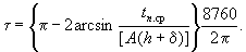 где Ап - амплитуда годового колебания температуры поверхности покрытия (см. приложение 1), °С; h - толщина слоя, находящегося над теплоизоляцией (общая толщина слоев над теплоизоляцией при многослойной конструкции), м; d - толщина теплоизолирующего слоя, м; w - частота колебаний температуры, 1/ч; a1 к a2 - коэффициенты температуропроводности материала, находящегося над теплоизоляцией,