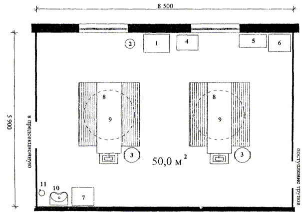 Рис. 2.1. Схема взаимосвязей основных помещений паталогоанатомического отделения Приложение 3Планировочные схемы основных помещений паталогоанатомических отделенийЭкспликация оборудования