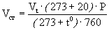 а - количество диоксанового спирта в анализируемом объеме раствора пробы, найденное по градуировочному графику, мкг; в - общий объем раствора пробы, мл; б - объем раствора пробы, взятой для анализа, мл; V - объем воздуха л, отобранного для анализа и приведенного к стандартным условиям, (см. приложение 1). Методические указания разработаны Московской медицинской академией им. И. М. Сеченова. Приложение 1Приведение объема воздуха к стандартным условиям (температуре 20 °С и давление 760 мм рт. ст.) Приведение объема воздуха к стандартным условиям проводят по формуле: