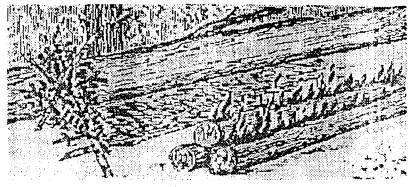 Рис 2. Долгогорящий ночлежный костер, применяемый в зимнее время