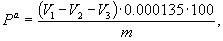 где 20 - количество стандартного раствора фосфата калия, см3; а - массовая доля фосфора, отсчитанная по градуировочному графику, г; В - объем раствора пробы, использованный для колориметрического определения (обычно В = 20 см3, за исключением проб с большой массовой долей фосфора), см3; m - масса навески золы, г. 3.4.2. Массовую долю фосфора в сухой испытуемой пробе Pd %, вычисляют по формуле