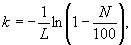 Примечание - Пересчет значений N в k проводят по формуле