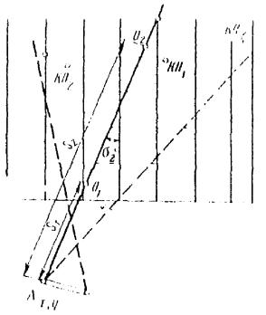где ml - допустимая ошибка положения точки в плане; Ymax - отстояние до наиболее удаленной точки фотографируемого объекта. 3. Базисы фотографирования располагают под одинаковым азимутом или дирекционным углом (A1B1 и A2B2 на рис. 24). Рис. 24 Допустимая разность дирекционных углов базисов (в сек) вычисляется по формуле