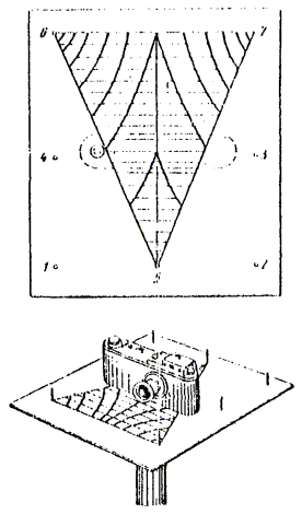 Когда модель в приборе построена, необходимо ориентировать относительно нее планшет с рабочей основой. Для этого используют