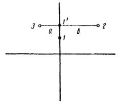 Пример. Для величины γ = 400 мм и f = 198 мм конвергенция составит γ = (XR - Xi)26′, если разность будет вычисляться в мм. Если, например XR - XL = 0,04 мм, то γ ≈ 1′. 7. Исправляют положение нульпункта отсчетного барабана конвергентного устройства. Для этого отпускают зажимные винты отсчетного барабана и поворачивают его до тех пор, пока отсчет по нему не станет равен вычисленному значению; после этого барабан закрепляют. 8. Ослабив зажимной винт, устанавливают барабан в положение γ = 0 и для контроля правильности юстировки все операции повторяют. Измерительные марки Чтобы определить, требуется ли юстировка положения измерительных марок, устанавливают каретку отстояний в крайнее дальнее положение и совмещают левую измерительную марку с центром контрольной сетки. Затем каретку приближают до отстояния 70-100 мм и вновь наблюдают марку. Если марка отошла от центра сетки более чем на четверть своего диаметра, необходимо произвести юстировку. Юстировку каждой измерительной марки рекомендуется выполнять в два этапа: вначале устранить смещение марки по горизонтали, затем - по вертикали. Устранение смещения левой марки по горизонтали производят в следующем порядке. 1. Устанавливают мостик отстояний в дальнее положение (отсчет Y1 = 400 мм). 2. Измерительную марку штурвалами X и Z совмещают с центральным (нулевым) вертикальным штрихом контрольной сетки (точка 1, рис. 3) вблизи центрального перекрестия и закрепляют стопор штурвала X. Рис. 3 3. Штурвалом Y каретку отстояний ставят в ближнее положение (отсчет Yг = 100 мм); при этом марка сместится с нулевого штриха и займет положение 2. 4. Штурвалом X (после открепления стопорного винта) перемещают марку в направлении, противоположном видимому смещению, в положение 3 так, чтобы ее смещение относительно нулевого штриха сетки было равно