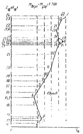 Вертикальные линии откладывают вниз для точек, отстояния которых меньше отстояния точки пересечения горизонтального следа поперечника с линией продольного разреза.