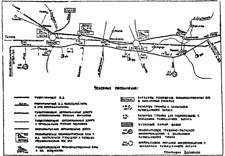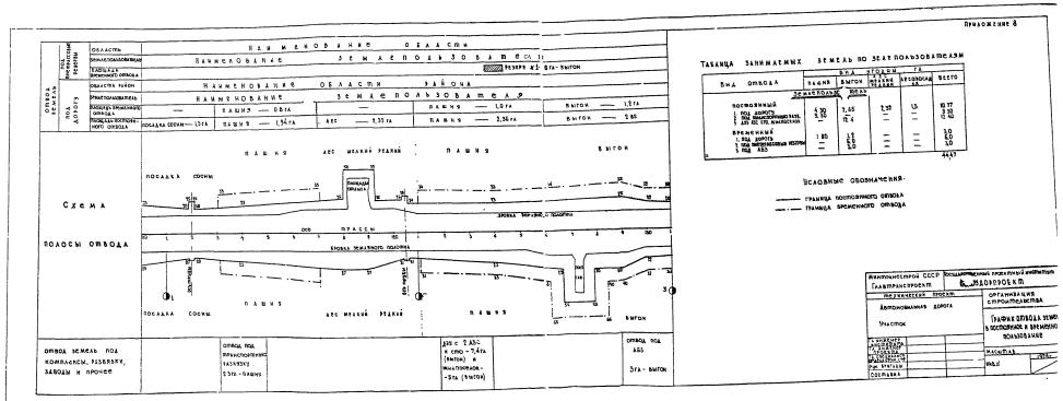 УКАЗАНИЯ "УТВЕРЖДАЮ" Главный инженер Союздорпроекта В.Р. Селков «14» июля 1976 г. Москва 1976 г. СОДЕРЖАНИЕ Предисловие Разработка новых "Методических указаний" вызвана существенным изменением порядка согласования отвода земель, отводимых в постоянное или временное пользование для строительства автомобильных дорог, в связи с вводом в действие "Основ земельного законодательства Союза ССР и Союзных республик", "Положения о порядке возбуждения и рассмотрения ходатайств о предоставлении земельных участков", а также в связи с выходом новых "Указаний по составлению проектов и смет на промышленное строительство" СН-202-76, "Указаний о порядке согласования с Министерством путей сообщения проектов железнодорожных подъездных путей" и письмом Госстроя СССР от 18 августа 1972 г. № 46-Д, уточнивших порядок согласования постройки таких путей и для нужд строительства автомобильных дорог, и других нормативных документов. С введением в действие настоящих "Методических указаний" и, одновременно, аналогичных "Указаний" для железных дорог, разработанных Гипропромтрансстроем, ранее действовавшие "Указания по сбору данных для составления проектов организации строительства", утвержденные Главтранспроектом Минтрансстроя 17 марта 1965 г., отменяются и не должны использоваться /ввиду несоответствия их "Основам земельного законодательства Союза ССР и Союзных республик". "Положениям о порядке возбуждения и рассмотрения ходатайств о предоставлении земельных участков", "Указаниям о порядке согласования с Министерством путей сообщения проектов железнодорожных подъездных путей" и другим документам по вопросам согласований для строительства, СН-202-76 и другим, введенным в действие за последние годы/. Разработка "Методических указаний" выполнена Отделом организации строительства ГПИ "Союздорпроект". В разработке принимали участие: Начальник Отдела организации строительства - Калечиц В.В. Главный специалист отдела - Монахов В.С. Руководители проектных бригад - Базовнина М.Д. и Хорольский В.И. Старшие инженеры Кабанова С.И., Захаров В.И. Инженеры Калинина Л.Г., Доспехов А.Б., Львова Л.И. Начальник технического отдела «Союздорпроекта» К.М. Ротштейн I. Общая часть1.1. Настоящие методические указания составлены для применения в проектно-изыскательских организациях, занимающихся изысканиями и проектированием автомобильных дорог с целью улучшения организации и проведения сбора данных, необходимых для составления проектных соображений или проектов организации строительства (ПОС) в составе технико-экономических обоснований, технических и техно-рабочих проектов строительства автомобильных дорог. 1.2. Настоящие методические указания составлены с учетом норм и требований СНиП глава III-А.6 "Организационно-техническая подготовка к строительству. Основные положения", "Инструкции по составлению проектов и смет для промышленного строительства", СН-202-76, введенной в действие с 1-го июля 1976 г., действующей "Инструкции о порядке составления и утверждения проектов организации строительства и проектов производства работ", СН 47-74, а также "Рекомендаций по методике составления проектов организации строительства и проектов производства работ", разработанных ЦНИИОМТП Госстроя СССР, "Положения о государственном учете вод и их использования", утвержденного постановлением Совета Мин
