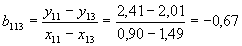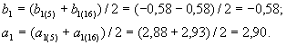А.5 Для комплекта 1 можно образовать 10 различных пар точек, через которые можно провести 10 прямых линий с коэффициентами b1nm и a1nm. По формуле (8) и данным таблицы А.2 вычисляют оценки коэффициентов b1nm: