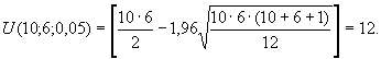 Проверяют правильность вычислений по формуле (18) 35 + 25=10 · 6. Статистика критерия Уилкоксона равна: U = min{35; 25} = 25. А.11 Вычисляют по формуле (19) критическое значение критерия Уилкоксона для уровня значимости 0,05: