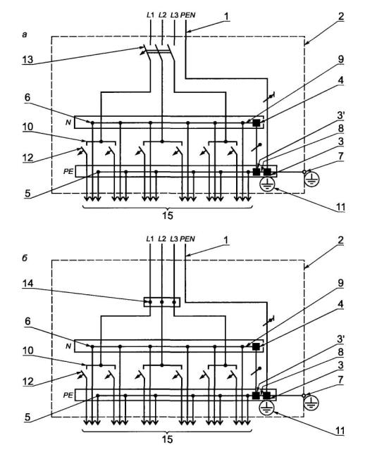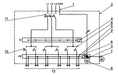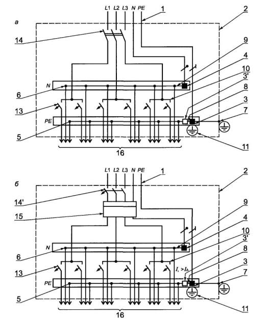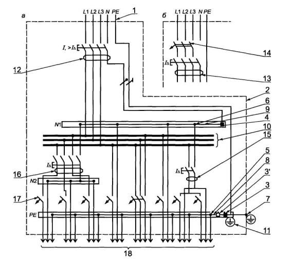 industrial and social buildings. Дата введения 2002-01-011 Область применения1.1 Настоящий стандарт распространяется на распределительные щитки (далее - щитки), применяемые в осветительных и силовых установках производственных, общественных, административных и других подобных зданий для приема и распределения электрической энергии при напряжении 380/220 и 660/380 В трехфазного переменного тока частотой 50 - 60 Гц, нечастого включения и отключения линий групповых цепей, а также для их защиты при перегрузках и коротких замыканиях. 1.2 Стандарт распространяется на щитки, присоединяемые к трехфазным сетям с типами систем заземления TN-S, TN-C, TN-C-S, ТТ по ГОСТ 30331.2/ГОСТ Р 50571.2. Схемы присоединения щитков с различными типами систем заземления приведены в приложении А. 1.3 Виды климатических исполнения по ГОСТ 15150 и ГОСТ 15543.1 – У3, УХЛ3, Т3, УХЛ4, Т4 (допускаются другие климатические исполнения щитков или те же исполнения с иным диапазоном температур окружающей среды). 1.4 Щитки могут устанавливаться в местах, доступных при эксплуатации неквалифицированному персоналу для выполнения коммутационных операций. 1.5 Стандарт устанавливает требования к щиткам, изготавливаемым для нужд экономики страны и экспорта. 1.6 Все пункты требований стандарта являются обязательными, за исключением 5.5 и 6.6.3, относящихся к рекомендуемым. 2 Нормативные ссылкиВ настоящем стандарте использованы ссылки на следующие стандарты: ГОСТ 2.601-95 Единая система конструкторской документации. Эксплуатационные документы ГОСТ 9.032-74 Единая система защиты от коррозии и старения. Покрытия лакокрасочные. Группы, технические требования и обозначения ГОСТ 9.302-88 Единая система защиты от коррозии и старения. Покрытия металлические и неметаллические неорганические. Методы контроля ГОСТ 9.303-84 Единая система защиты от коррозии и старения. Покрытия металлические и неметаллические неорганические. Общие требования к выбору ГОСТ 9.401-91 Единая система защиты от коррозии и старения. Покрытия лакокрасочные. Общие требования и методы ускоренных испытаний на стойкость к воздействию климатических факторов ГОСТ 9.410-88 Единая система защиты от коррозии и старения. Покрытия порошковые полимерные. Типовые технологические процессы ГОСТ 12.1.004-91 Система стандартов безопасности труда. Пожарная безопасность. Общие требования ГОСТ 12.2.007.0-75 Система стандартов безопасности труда. Изделия электротехнические. Общие требования безопасности ГОСТ 12.4.026-76 Система стандартов безопасности труда. Цвета сигнальные и знаки безопасности ГОСТ 10434-82 Соединения контактные электрические. Классификация. Общие технические требования ГОСТ 11516-94 Ручные инструменты для работ под напряжением до 1000 В переменного и 1500 В постоянного тока ГОСТ 14192-96 Маркировка грузов ГОСТ 14254-96 (МЭК 529-89) Степени защиты, обеспечиваемые оболочками (Код IP) ГОСТ 15140-78 Материалы лакокрасочные. Методы определения адгезии ГОСТ 15150-69 Машины, приборы и другие технические изделия. Исполнения для различных климатических районов. Категории, условия эксплуатации, хранения и транспортирования в части воздействия климатических факторов внешней среды ГОСТ 15151-69 Машины, приборы и другие технические изделия для районов с тропическим климатом. Общие технические условия ГОСТ 15543.1-89 Изделия электротехнические. Общие требования в части стойкости к климатическим внешним воздействующим факт