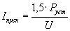 где: I - длительный максимально допустимый ток, А; Pном - номинальная потребляемая мощность, Вт; U - напряжение питания, В. Коммутационные, пусковые и защитные аппараты подбирают, исходя из величины суммарного пускового тока с коэффициентом запаса 1,5 и времени спадания пускового тока: