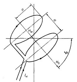 где N - число витков КГ; R - радиус КГ, м (для магнитометра, линейный размер которого менее 150 мм, значение R должно быть равно или более 0,35 м); Iкг - ток, протекающий через витки КГ, А. Напряженность поля, возбуждаемого током Iкг в центре КГ, определяют по формуле