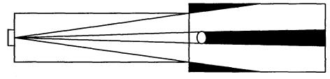 Рис. 5. Акустическая тень (затемненная зона) 4.4. Акустическое поле 4.4.1. Акустическое поле (Acoustic field, sound field): 1. Область существования акустических волн. Представляется в виде распределения амплитуды волны в пространстве. 2. Трехмерная структура излучения, полученная от источника акустической энергии [10]. 4.4.2. Ближняя зона, зона Френеля (Near field, Fresnel-zone): 1. Прилегающая к излучателю зона, в которой акустическое поле имеет вид чередующихся между собой максимумов и минимумов, ограниченная расположением последнего максимума, после которого происходит монотонное уменьшение амплитуды с расстоянием. Протяженность ближней зоны круглого пьезоэлемента