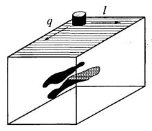 Рис. 14. Объемное представление 4.10.8. Дефектограмма (Defectogram) - изображение результатов контроля на дисплее или твердом носителе, позволяющее судить о наличии, расположении, размерах и других параметрах выявленных дефектов. 4.10.9. Метка на экране (Screen marker) - электронная метка, обычно в виде импульса определенной формы, отмечающая определенный момент времени, временной интервал стробирования или иные используемые для контроля данные. 4.10.10. Томографическое изображение, томограмма (Tomographic presentation) - изображение сечения объекта контроля. 4.11. Типы несплошностей и образцы для контроля4.11.1. Дефект (Imperfection, defect): В широком смысле: любое отклонение изделия от установленных технических требований. В узком смысле: несплошность. 4.11.2. Несплошность (Discontinuity) - нарушение однородности материала, вызывающее скачкообразное изменение его акустических характеристик - плотности, скорости звука, волнового сопротивления. Примеры несплошностей: трещины, шлаковые включения, непровары, раковины и т.п. Примечания: 1. К дефектам, не являющимся несплошностями, относятся, например, отклонения физико-механических свойств материалов от допустимых значений (например, пониженная прочность или твердость), изменение толщины. 2. В приводимых далее определениях из известных стандартов используется термин «дефект», служащий корнем производных от него терминов «дефектоскопия» и «дефектоскоп». Однако основными типами дефектов являются именно несплошности, поэтому в дальнейшем будет использован термин «несплошность». При цитировании источников, в которых употребляется слово «дефект», после него в скобках будет приведен термин «несплошность». 4.11.3. Отражатель (Reflector) - зона изменения однородности среды, отражающая падающие на нее упругие волны. 4.11.4. Искусственная несплошность (Artifitial discontinuity) - несплошность известных размеров, формы и расположения, выполненная в образце и служащая для получения акустических сигналов. 4.11.5. Искусственный отражатель (Artifitial reflector): 1. Искусственная несплошность, служащая для получения эхо-сигналов в методе отражения. 2. Отражатель известных размеров, формы и расположения, выполненный в образце и служащий для получения эхосигналов. 4.11.6. Контрольный отражатель (Reference reflector) - отражатель известных размеров, формы и расположения, выполненный в стандартном образце или стандартном образце предприятия и служащий для настройки или проверки акустической аппаратуры, а также для оценки параметров выявленных дефектов. Примеры контрольных отражателей: боковые отверстия; плоскодонные отверстия; полусферические донные отверстия; надрезы (пазы) [10]. 4.11.7. Модель дефекта (flaw model) - нарушение сплошности (однородности) материала или соединения, имеющее правильную геометрическую форму и заменяющее дефект при теоретическом анализе. 4.11.8. Плоскодонное отверстие (Flat bottom hole) - искусственный отражатель в виде плоского дна цилиндрического отверстия, ориентированного перпендикулярно оси отверстия. 4.11.9. Боковое цилиндрическое отверстие (Side drilled hole) - искусственная несплошность в виде цилиндрической поверхности, ось которой перпендикулярна направлению падающего акустического пучка [2]. 4.11.10. Угловой отражатель (Angle reflector, corner reflector) - отражатель, образованный двумя (тремя) взаимно перпендикулярными поверхностями, составляющими прямой угол [10]. 4.11.11. Зарубка (Notch) - плоский 