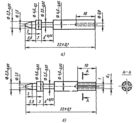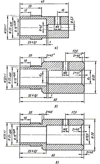 Рис. 2.2. Центральная втулка разъема. Материал - латунь: а) - для кабелей абонентских марок: РК-75-4-11, РК-75-4-112, РК-75-4-113; б) - для кабелей марок: РК-75-9-12 d1=1,32; РК-75-11-11с d1=1,85; РК-75-17-12 и PK-75-17-13c d1=2,7