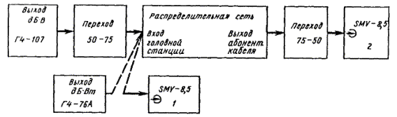 * Результаты проверки данного параметра являются справочными и не учитываются при сдаче системы на техническое обслуживание. 5.1.2. Проверка параметров распределительной сети системы по табл. 5.1 на соответствие требованиям ГОСТ 11216-83 проводятся полностью или частично в случае, если субъективная оценка качества изображения при работе распределительной сети системы от генераторов испытательных таблиц или при работе системы от сигналов эфирного вещания, не соответствует требованиям табл. 2.2 настоящей инструкции. 5.1.3. Измерения параметров по табл. 5.1 производятся на любом абонентском отводе ДРС, выбранном таким образом, чтобы обеспечить измерение параметров всех магистральных и субмагистральных усилителей, включенных в линию или на линии, для которой обязательно измерение параметров в соответствии с п. 5.1.2. 5.1.4. Порядок измерений по табл. 5.1 допускается изменять. 5.2. Дополнительная регулировка системы5.2.1. При несоответствии параметров системы требованиям п. 1 табл. 5.1 необходимо: проверить неравномерность АЧХ по соответствующим каналам на выходе ГС, неисправные блоки заменить; если на выходе ГС неравномерность АЧХ соответствует ее паспортным данным, последовательно переходя от усилителя к усилителю, выявить место появления неравномерности и заменить неисправные элементы. 5.2.2. При несоответствии параметров системы требованиям п. 2 табл. 5.1 необходимо: проверить отношение сигнала к помехе комбинационной частоты на выходе ГС, заменить неисправные блоки; последовательно переходя от усилителя к усилителю (начиная с дальнего конца линии), выявить место появления большого уровня помехи и заменить неисправные элементы; при отсутствии явно выраженного элемента, вносящего повышенный уровень помехи, несколько уменьшить в пределах не более 3 дБ выходные уровни сначала домового, а затем последовательно субмагистральных и магистральных усилителей. 5.2.3. При несоответствии параметров системы требованиям п. 3 табл. 5.1 необходимо: проверить отношение сигнала к фоновой помехе на выходе ГС, заменить неисправные блоки; последовательно переходя от усилителя к усилителю (начиная с дальнего конца линии), выявить место появления большого уровня фоновой помехи и заменить неисправные элементы. 5.2.4. При несоответствии параметров системы требованиям п. 4 табл. 5.1 необходимо: проверить отношение сигнала к шуму на выходе ГС, заменить неисправные блоки; последовательно переходя от усилителя к усилителю (начиная с дальнего конца линии), выявить место появления большого уровня шума, заменить неисправные блоки. 5.2.5. При несоответствии параметров системы требованиям п. 5 табл. 5.1 необходимо: проверить К-фактор на выходе ГС, заменить неисправные элементы; последовательно переходя от усилителя к усилителю (начиная с дальнего конца линии), выявить место появления линейных искажений и заменить неисправные элементы. 5.2.6. После замены неисправных блоков необходимо проводить повторную регулировку системы по разделу 4 настоящей инструкции на ее нисходящих ветвях, а затем повторить проверку параметров в соответствии с настоящим разделом. 5.2.7. При неудовлетворительных результатах настройки системы по методикам настоящей инструкции вопрос об обеспечении основных электрических параметров системы и распределительной сети необходимо решать с проектной органи