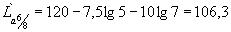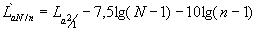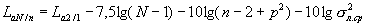 где La2/1 - максимальный выходной уровень используемого усилителя при отношении сигнала к помехе комбинационной частоты 3-го порядка IMAIII(B)=60 дБ. Для используемых магистральных усилителей серии 200 La2/1=120 дБ/мкВ. Примечание. При расчете максимального выходного уровня принимаем, что результирующая загрузка усилителя всеми сигналами УКВ ЧМ вещания примерно эквивалентна загрузке сигналом одного ТВ канала. При этом условии в рассматриваемом случае N=6.