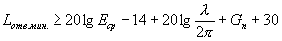 где Rп - защитное отношение для повторного сигнала, дБ. При расчете Ln следует учесть ослабление электромагнитного поля стенами зданий, среднее значение которого составляет по экспериментальным данным порядка 14 дБ. Величина Gп согласно [15] для современных ТВ приемников может быть принята равной минус 50 дБ в 1 ТВ диапазоне и минус 40 дБ во II и III диапазонах. С учетом выполнения защитного отношения по повторному сигналу Rп=30 дБ минимально допустимый уровень на выходе абонентского отвода