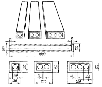 Приложение 36Таблицы размеров балок для подвески кабельной канализацииТаблица П36.1. Для прямоугольных бетонных 1 - 3-канальных блоков или асбестоцементных с 2 - 6 каналами