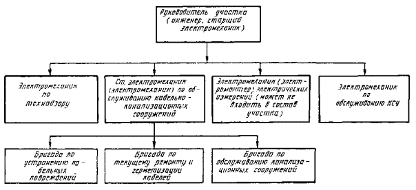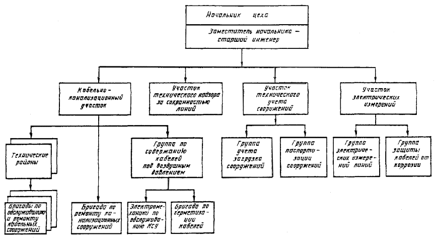 Государственный комитет Российской Федерации УТВЕРЖДЕНО начальником Управления электросвязи Госкомсвязи России 05.06.98 РУКОВОДСТВО ПО ЭКСПЛУАТАЦИИ Москва - 1998 ПРЕДИСЛОВИЕЗа последние годы на местных сетях связи начали применяться многопарные кабели в алюминиевой и стальной гофрированной оболочках, оптические кабели, а также кабели в пластмассовой оболочке с гидрофобным заполнением. Внедряются новые способы сращивания жил и восстановления оболочек кабелей. Разработаны и внедряются новые типы колодцев и трубопроводов кабельной канализации. Применяются новые методы технической эксплуатации линейно-кабельных сооружений и прогрессивные формы организации и стимулирования труда работников линейно-кабельного цеха. Правильная организация технической эксплуатации линейно-кабельных сооружений имеет большое значение для бесперебойного обеспечения телефонной связью органов государственного управления, предприятий, организаций, учреждений и населения. С целью улучшения эксплуатации линейно-кабельных сооружений местных сетей связи разработано данное Руководство. Настоящее «Руководство по эксплуатации линейно-кабельных сооружений местных сетей связи» содержит указания по организации эксплуатации, техническому обслуживанию, текущему и капитальному ремонту линейно-кабельных сооружений. В нем приведены характеристики линейно-кабельных сооружений. Даны рекомендации по предупреждению и устранению аварий и повреждений линейно-кабельных сооружений, а также по монтажу кабельных линий и содержанию их под постоянным избыточным газовым давлением. Рассмотрены основные виды работ по переустройству линейно-кабельных сооружений. Особое внимание уделено вопросам взаимоотношений местных сетей связи с проектными и строительными организациями связи и вопросам технического надзора за сохранностью линейно-кабельных сооружений. С введением в действие настоящего Руководства утрачивают силу: «Руководство по эксплуатации кабельных сооружений городских телефонных сетей» (М., Связь, 1970), «Руководство по эксплуатации кабельных сооружений сельских телефонных сетей» (М., Связь, 1977) и «Руководство по эксплуатации канализационных сооружений городских телефонных сетей» (М., Связь, 1971). Выполнение содержащихся в данном Руководстве указаний обязательно для всех работников местных, сетей связи, занятых технической эксплуатацией линейно-кабельных сооружений. Руководство составлено коллективом авторов Ленинградского отраслевого научно-исследовательского института связи (ЛОНИИС) и ОАО «Мостелефонстрой» и согласовано с УЭС Госкомсвязи России. 1. ОБЩИЕ УКАЗАНИЯ1.1. Местные сети связи по своему назначению подразделяются на: - сети связи общего пользования, представляющие составные части взаимоувязанной сети связи Российской Федерации, открытые для пользования всем физическим и юридическим лицам; - ведомственные сети связи - сети электросвязи органов исполнительной власти, учреждений, предприятий, организаций, создаваемые для удовлетворения производственных и специальных нужд, имеющие выход на местные сети связи общего пользования; - внутрипроизводственные и технологические сети связи - сети электросвязи органов исполнительной власти, предприятий, учреждений, организаций, колхозов, совхозов, создаваемые для управления внут