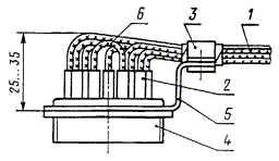 1 - жгут; 2 - нитяной бандаж; 3 - изоляционная трубка; 4 - провод Черт. 3