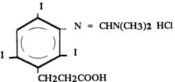 Хлоргидрат билимин-кислоты - b-(3-диметиламино-метиленамино-2,4,6-трийодфенил)-пропионовой кислоты хлоргидрат (примесей неопределенного состава 5 %) - белый с сероватым оттенком мелкокристаллический порошок. Устойчив при хранении. Мало растворим в воде, лучше - в спирте, метаноле, ацетоне, не растворим в хлороформе. Тпл. - 248 - 252 °С. В воздухе находится в виде аэрозоля. Оказывает общетоксическое действие, умеренно раздражает слизистые оболочки глаз и слабо - кожу, обладает слабым кожно-резорбтивным действием, может вызывать аллергические реакции. ПДК в воздухе - 1 мг/м3. Характеристика метода Метод основан на измерении светопоглощения растворов хлоргидрата билимин-кислоты в этаноле при длине волны 235 нм. Отбор проб проводят с концентрированием на фильтре. Нижний предел измерения содержания хлоргидрата билимин-кислоты в фотометрируемом объеме пробы - 20 мкг. Нижний предел измерения концентрации хлоргидрата билимин-кислоты в воздухе - 0,5 мг/м3 (при отборе 40 л воздуха). Диапазон измеряемых концентраций в воздухе от 0,5 до 12 мг/м3. Определению не мешают пары спирта. Оно избирательно на стадиях сушки, просеивания и фасовки. Суммарная погрешность измерения не превышает ±15,5 %. Время выполнения измерения - 55 мин. Приборы, аппаратура, посуда Спектрофотометр М-40 UV-ViS или аналогичный прибор Аспирационное устройство МРТУ 42-862-64 Фильтродержатели Стаканы химические, вместимостью 50 мл ГОСТ 10394-72 Колбы мерные, вместимостью 25 и 100 мл ГОСТ 1770-74 Пипетки, вместимостью 1, 2, 5 и 10 мл ГОСТ 20292-74 Реактивы, растворы, материалы Хлоргидрат билимин-кислота Этиловый спирт, ректификованный, 96 %-ный ГОСТ 8314-77 Стандартный раствор № 1 с концентрацией вещества 634 мкг/мл готовят растворением 0,0634 г хлоргидрата билимин-кислоты в этаноле в мерной колбе, вместимостью 100 мл. Раствор устойчив в течение 2-х недель. Стандартный раствор № 2 с концентрацией 200 мкг/мл готовят соответствующим разбавлением стандартного раствора № 1 этанолом. Раствор устойчив в течение 2-х недель. Фильтры АФА ВП-10 ТУ 95-743-80 Отбор проб воздуха Воздух с объемным расходом 5,0 л/мин аспирируют через фильтр АФА ВП-10. Для измерения 1/2 ПДК следует отобрать 40 л воздуха. Срок хранения отобранных проб - сутки. Подготовка к измерению Градуировочные растворы (устойчивы в течение суток) готовят согласно таблице. Таблица