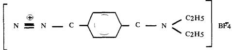 М. м. 262,94 п-Диазодиэтиланилинборфторид - кристаллическое вещество желто-коричневого цвета. Тпл. - 104 - 105. °С. Хорошо растворяется в воде, спиртах. В воздухе находится в виде аэрозоля. п-Диазодиэтиланилинборфторид - высокотоксичное соединение, обладающее политропным действием. Продукт кумулирует в организме, раздражает кожу и слизистые оболочки, способен к кожной резорбции. ОБУВ в воздухе - 0,5 мг/м3. Характеристика метода Метод основан на реакции взаимодействия п-диазодиэтиланилинборфторида с R-солью (2-нафтол-3,6,-дисульфонат натрия) в щелочной среде (1 %-ный раствор Nа2СО3) с образованием азокрасителя синего цвета и последующем фотометрическом измерении оптической плотности окрашенного продукта реакции при 540 нм. Отбор проб с концентрированием на фильтр. Нижний предел измерения содержания п-диазодиэтиланилинборфторида в анализируемом объеме раствора пробы -5 мкг. Нижний предел измерения концентраций п-диазодиэтиланилинборфторида в воздухе - 0,25 мг/м3 (при отборе 20 л воздуха). Диапазон измеряемых концентраций п-диазодиэтиланилинборфторида в воздухе от 0,25 до 2,5 мг/м3. Определению п-диазодиэтиланилинборфторида мешают соли диазония, дающие аналогичную реакцию с R-солью. Суммарная погрешность измерения не превышает ±11,5 %. Время выполнения измерения, включая отбор пробы - 1 ч. Приборы, аппаратура, посуда Фотоэлектроколориметр или спектрофотометр Аспирационное устройство Фильтродержатель Колбы мерные, вместимостью 25, 100, 150, 1000 мл ГОСТ 1770-74 Цилиндр мерный, вместимостью 25 мл ГОСТ 1770-74 Стакан химический, вместимостью 50 мл ГОСТ 25336-82 Пипетки, вместимостью 0,2, 1, 5 мл ГОСТ 20292-74 Секундомер Термометр жидкостный лабораторный Плитка электрическая Сетка асбестовая Палочка стеклянная Баня водяная Реактивы, растворы, материалы п-Диазодиэтиланилинборфторид ТУ 6-43-972-П-89 Стандартный раствор № 1 с концентрацией п-диазодиэтиланилинборфторида 1 мг/мл готовят растворением 1,000 г п-диазодиэтиланилинборфторида в дистиллированной воде в мерной колбе, вместимостью 1 л. Раствор устойчив при хранении в темном месте в течение 3-х месяцев. Стандартный раствор № 2 с концентрацией п-диазодиэтиланилинборфторида 50 мкг/мл готовят соответствующим разбавлением дистиллированной водой стандартного раствора № 1. 2-Нафтол-3,6-дисульфонат натрия (R-соль), ч. ТУ 6-06-162-70 Используют 1 %-ный раствор R-соли в 1 %-ном растворе карбоната натрия, который готовят следующим образом: растворяют 2,5 г R-соли и 1,5 г карбоната натрия в мерной колбе вместимостью 250 мл в дистиллированной воде. Раствор устойчив в течение суток. Натрий углекислый безводный (карбонат натрия), х. ч. ГОСТ 83-79 Фильтры АФА-ВП-20 ТУ 95-7181-76 Отбор проб воздуха Воздух с объемным расходом 5 л/мин аспирируют через фильтр АФА-ВП-20, помещенный в фильтродержатель. Для измерения 0,5 ОБУВ следует отобрать 20 л воздуха. Отобранные пробы устойчивы в течение суток. Подготовка к измерению Градуировочные растворы (применяют свежеприготовленными) готовят согласно таблице. Таблица Шкала градуировочных растворов