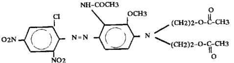 (ДЖКП-2Ж; 2,6-дихлор-4-нитро-4¢N-ацетоксиэтил-N-цианэтиламиноазобензол). ПДК в воздухе - 0,5 мг/м3.