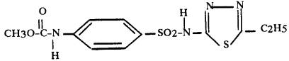 2-Карбметоксисульфаниламидо-5-этил-1,3,4-тиадиазол М. м. 342,41 Карбметоксиэтазол - кристаллический порошок кремового цвета. Растворим в щелочах. Обладает общетоксическим действием. В воздухе находится в виде аэрозоля. ПДК в воздухе - 1 мг/м3 (II). Характеристика метода Метод основан на реакции взаимодействия карбметоксиэтазола с нитритом натрия и a-нафтолом в щелочной среде с последующим подкислением раствора и фотометрическом измерении окрашенного продукта реакции при 540 нм. Отбор проб проводят с концентрированием на фильтр. Нижний предел измерения в фотометрируемом объеме пробы - 10 мкг. Нижний предел измерения карбметоксиэтазола в воздухе - 0,5 мг/м3 (при отборе 200 л воздуха). Диапазон измеряемых концентраций в воздухе - от 0,5 до 2,5 мг/м3. Суммарная погрешность измерения не превышает ±15 %. Метод селективен в условиях производства. Определению не мешает пиридин. Время выполнения измерения, включая отбор проб - 35 мин. Приборы, аппаратура, посуда Фотоэлектроколориметр Аспирационное устройство Фильтродержатели Пробирки колориметрические, высотой 120 мм и внутренним диаметром 15 мм ГОСТ 10515-75 Колбы мерные, вместимостью 100 мл ГОСТ 1770-74 Пипетки, вместимостью 1, 5, 10 мл ГОСТ 20292-74 Стаканы химические, вместимостью 50 мл ГОСТ 199080-80 Фильтры аэрозольные, АФА-ВП-10 ТУ 95-743-80 Реактивы, растворы, материалы Карбметоксиэтазол Натрия гидроксид, х. ч., 2 н водный раствор ГОСТ 4328-77 Натрия нитрит, х. ч., 5 %-ный водный раствор ГОСТ 4197-74 a-нафтол, ч. д. а., 0,2 %-ный раствор в 0,1 н гидроксиде натрия ГОСТ 5838-79 Кислота соляная, х. ч., 1,6 н водный раствор ГОСТ 3118-77 Стандартный раствор карбметоксиэтазола с концентрацией 100 мкг/мл готовят растворением 0,01 г карбметоксиэтазола в 2 н растворе гидроксида натрия в колбе вместимостью 100 мл. Раствор устойчив 1 неделю при хранении в темном, прохладном месте. Отбор проб воздуха Воздух с объемным расходом 20 л/мин аспирируют через фильтр АФА-ВП-20, помещенный в фильтродержатель. Для определения 1/2 ПДК следует отобрать 200 л воздуха. Срок хранения пробы - 1 месяц. Подготовка к измерению Градуировочные растворы готовят согласно таблице. Таблица Шкала градуировочных растворов