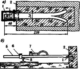 Контруголки (контррельсы) протягивают до задней грани устоев или закладных щитов, далее концы их на протяжении не менее 10 м сводят "челноком", заканчивающимся металлическим башмаком.