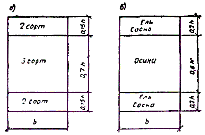 2. МАТЕРИАЛЫНоменклатура2.1. В несущих и ограждающих деревянных конструкциях применяются: круглый лес, используемый в целом виде; пиломатериалы и клееные заготовки из них; многослойные клееные заготовки из фрезерованных пиломатериалов; листовая многослойная фанера; фанерные трубы; древесные плиты; водостойкие клеи; влагозащитные лаки и составы; антисептики и антипирены; стальной прокат, арматура и др. Лесоматериалы2.2. Круглые лесоматериалы следует использовать преимущественно для конструкций, изготавливаемых в построечных и полевых условиях (например, сельскохозяйственные здания с балочно-стоечным каркасом, опоры ЛЭП и др.). Пиломатериалы являются основными конструкционными лесоматериалами для конструкций из цельной и клееной древесины. Для многослойных клееных заготовок из древесины сосны и ели наиболее целесообразно применять пиломатериалы толщиной 40 и 25 мм, причем тонкие пиломатериалы следует использовать для изготовления гнутоклееных элементов с ограниченным радиусом кривизны и растянутых элементов; пиломатериалы из осины и лиственницы можно использовать толщиной 25 мм с устройством в них продольных компенсационных прорезей, располагаемых друг от друга на расстоянии 40 мм и не менее чем на 10 - 15 мм от кромки доски. Глубина прорезей должна быть равной 1/2 толщины слоя, ширина 2 - 3 мм. 2.3. Рекомендуемый сортамент приведен в табл. 2. 2.4. Однослойные заготовки из склеенных на зубчатый шип или на зубчатый шип и по кромке маломерных пиломатериалов, предназначенные для использования в несущих элементах деревянных конструкций, должны удовлетворять следующим требованиям: влажность склеиваемых на зубчатый шип пиломатериалов допускается не выше 15 %, размеры зубчатого шипа должны быть не менее чем у типа I-32; клеи только на резорциновой основе (ФР-12 и ФРФ-50); временное сопротивление изгибу при нагружении пласти для клееных заготовок, соответствующих пиломатериалам второго сорта, - не ниже 27 МПа и третьего сорта - не ниже 20 МПа. Таблица 2