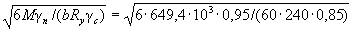 (безразмерных параметров) Экваториальный и полярный моменты инерции прямоугольного сечения соответственно равны: Jy = b3h/12 и Jd ≈ b3h/3. Отсюда следует, что отношение изгибной к крутильной жесткости составит γ = EJy/(GJd) = 20/4 = 5. 4.19. Влияние схемы нагружения и различных по форме эпюр изгибающих моментов, условий подкрепления кромок, переменной жесткости учитывается введением соответствующих коэффициентов к принятым за эталон критическим значениям: осевой силы для сжатого стержня Nэ = π3EJy/l2 = φэRвр.сFбр; (23) момента для стержня, подверженного чистому изгибу: Mэ = π Из (23) следует, что φэ = π2EJy/(l2Rвр.сF) ≈ 3000/λ2у, а из (24) φM = π тогда при иных условиях имеем Nкр = KNNэ и Mкр = KMMэ, где KN и KM - коэффициенты, получаемые в результате решения соответствующих краевых задач, которые приводят решаемый случай к принятым за эталон по формулам (23) и (24). Отсюда вытекают зависимости φрN = KNφэ и φрM = KMφM, где φрM и φрN - расчетные значения коэффициентов для рассматриваемых случаев. 4.20. Коэффициенты KN и KM зависят от различных факторов. Поэтому представляется целесообразным провести их дальнейшую дифференциацию по определяющим факторам: KN = KпNKжN; KM = KфKпMKжM, где KпN - коэффициент влияния подкрепления кромки при центральном сжатии стержня постоянного поперечного сечения; KпM - коэффициент влияния подкрепления растянутой кромки при чистом изгибе элемента постоянного сечения; KжN и KжM - см. п. 4.4. По своему смыслу эти коэффициенты являются коэффициентами приведения элемента с подкрепленной кромкой к эталонному. Они показывают, во сколько раз критическое усилие или критический момент элемента постоянного сечения с подкрепленной кромкой больше критического усилия или критического момента того же элемента без подкрепления. Для элементов без подкрепления KпN = 1 и KпM = 1. 4.21. Формулы (24) и (34) СНиП II-25-80 для определения коэффициентов KпN и KпM распространяются на элементы прямолинейного и кругового очертания. Они получены из решения задачи устойчивости дугообразной полосы, нагруженной постоянной силой N и моментом M (по теории В.З. Власова), которое приводит к зависимости M + Nh/3 = EJy[(h2/4)(πn/l)2 + h/r0 + l2/(r20π2n2)] + GJd(h/r0 + 1), (25) где l - расстояние по дуге между закрепленными сечениями; n - число полуволн синусоиды собственной формы выпучивания из плоскости; r0 - радиус кривизны дуги по осевой линии. Зависимость (25) в самом общем виде может быть заменена выражением M + AN = D, (26) если M = 0, ANкр = D и Nкр = D/A, при N = 0 Mкр = D. Из (26) имеем M/D + AN/D = 1, откуда N/Nкр + M/Mкр = 1. (27) Здесь Nкр и Mкр - критические значения силы N и момента M при их раздельном действии. Используя условие EJy(GJd) = 5 и полагая n = 1 из (25), получим Nкр = (3GJd/h2)[1 + 12,5(h/l)2 + 10αр(h/l)], (28) Mкр = (GJd/h)[1 + 12,5(h/l)2 + 10αр(h/l)], (29) где αр = l/r0. Принимая во внимание, что в данном случае KN = KпN = Nкр/Nэ и KM = KпM = Mкр/Mэ, после подстановки из формул (23), (24), (28), (29) выражений Nэ, Mэ, Nкр, Mкр получим формулы (24) и (34) СНиП II-25-80. Найденные зависимости соответствуют решению задачи устойчивости плоской формы деформирования дугообразной полосы, для которой эффект закрепления кромки учтен, как для прямой полосы. Это допущение оправдано тем, что оно компенсирует влияние других факторов, не учитываемых исходными уравнениями. К таким факторам, в частности, надо отнести деформации поперечных сечений. 4.22. Если по растянутой или менее напряженной кромке сжато-изгибаемого элемента имеются точечные (дискретные) подкрепления, то необ