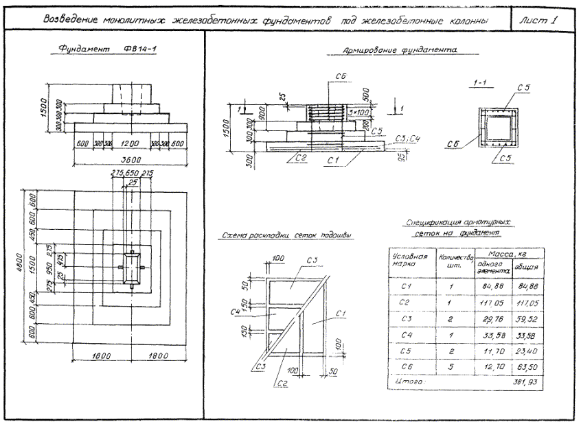 железобетонных фундаментов под железобетонные и стальные колонны. Приведены
