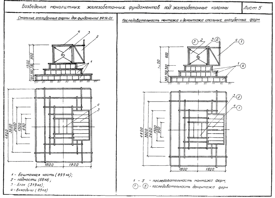 Опалубливание фундаментов рассматривается в карте двумя типами