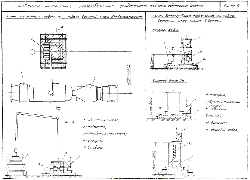 работ при возведении фундаментов. Представлены конструктивные схемы по