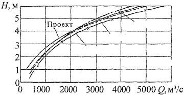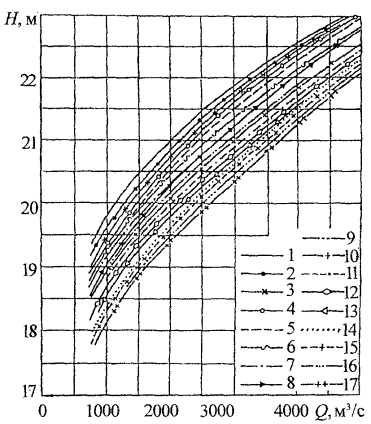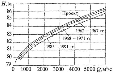 Рис. П1.1. Кривые связи расходов и уровней в нижнем бьефе Новосибирской ГЭС: