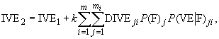 где mj - общее количество учитываемых j-х воздействий на рассматриваемый элемент окружающей среды; IVE1 - индекс ценности элемента для предшествующего (текущего) состояния окружающей среды; k=±1 - коэффициент, зависящий от характера воздействия на элемент (позитивного, негативного); ΔIVEj - ожидаемый прирост (снижение) индекса ценности элемента при условии достижения максимального эффекта от j-го воздействия; Р(F)j - вероятность возникновения j-го воздействия объекта на окружающую среду; P(VE|F)j - условная вероятность изменения ценности элемента при j-м воздействии объекта на окружающую среду. При работе группы экспертов значение ΔIVEj, а также значения вероятностей соответствующих событий P(F)j и P(VE|F)j могут определяться, как уже отмечалось, методом экспертных оценок, в том числе и как средние арифметические значения. Кроме того, различным значениям ΔIVE один и тот же эксперт может предписывать различные i-е значения вероятностей P(VE|F)ji, формируя при этом (обязательное условие) полную группу событий, т. е. поступая таким образом, чтобы сумма P(VE|F)ji равнялась единице. В этом случае