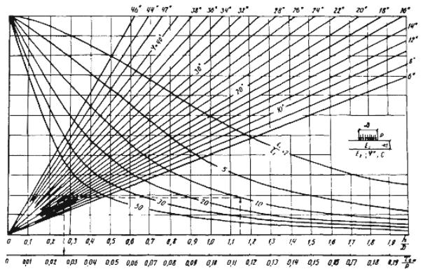 3. Номограмма для определения активных напряжения сдвига от временной нагрузки